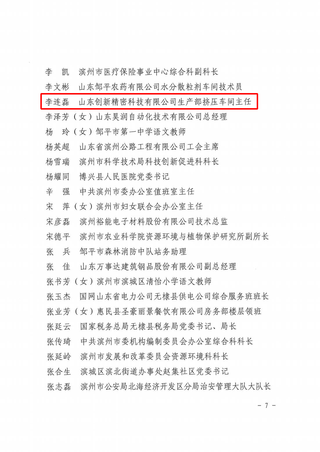 近日,滨州市总工会发布了《关于表扬在品质滨州建设劳动中表现突出的集体和个人的通报》,山东创新精密科技有限公司生产部挤压车间主任李连磊荣获“品质滨州建设劳动中表现突出的个人”荣誉称号。